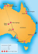 on your unforgettable South Pacific adventure. Cities you will visit while on tour include Cairns, Darwin, Kakadu National Park, Alice Springs, Ayers Rock, Adelaide Melbourne, Sydney, overnight on the unforgettable Ghan Railway, and more. |
